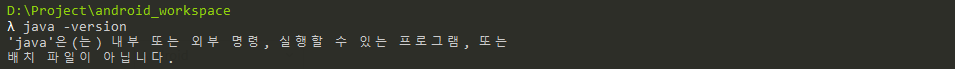 Version 확인을 했을 때 아래와 같이 아무것도 나오지 않는다면 JDK가 설치되지 않았을 수 있다. Program Files 하위에 Java 디렉토리가 존재하고 jdk와 jre 같은 디렉토리가 보인다면 환경 변수가 올바르게 잡혔는지 확인해볼 필요도 있다.