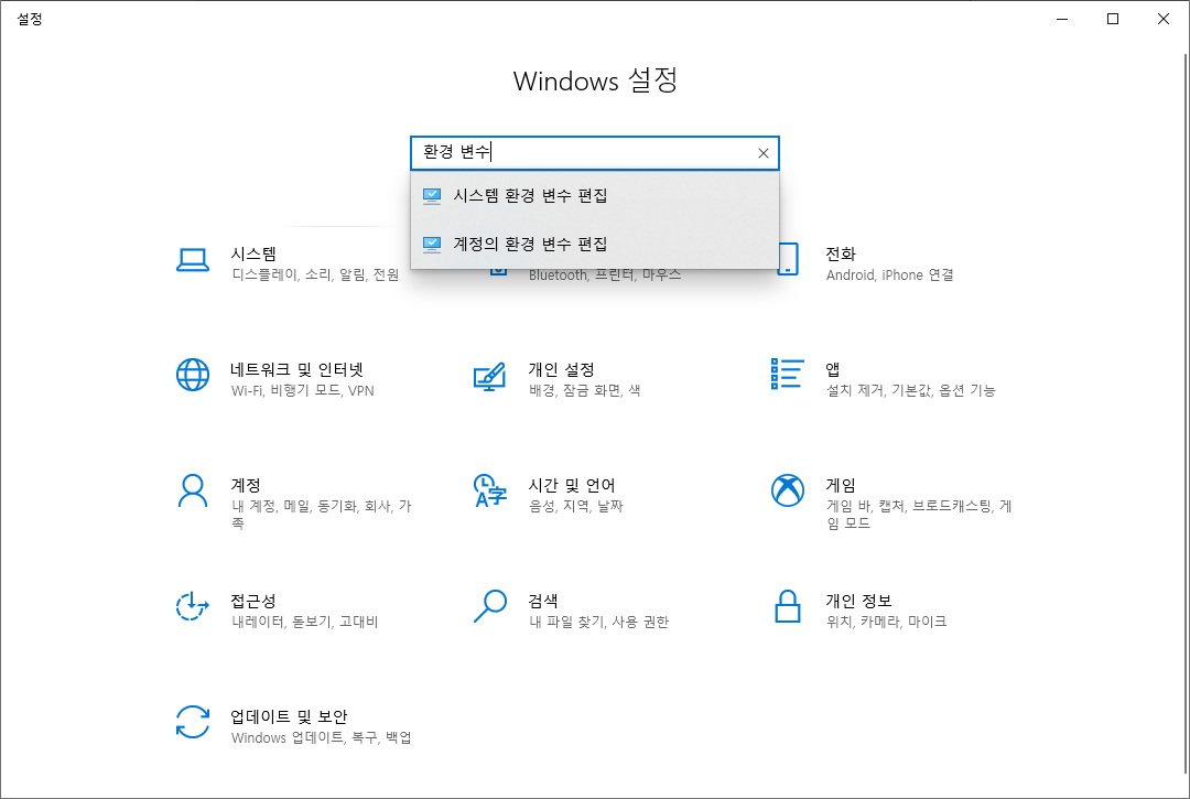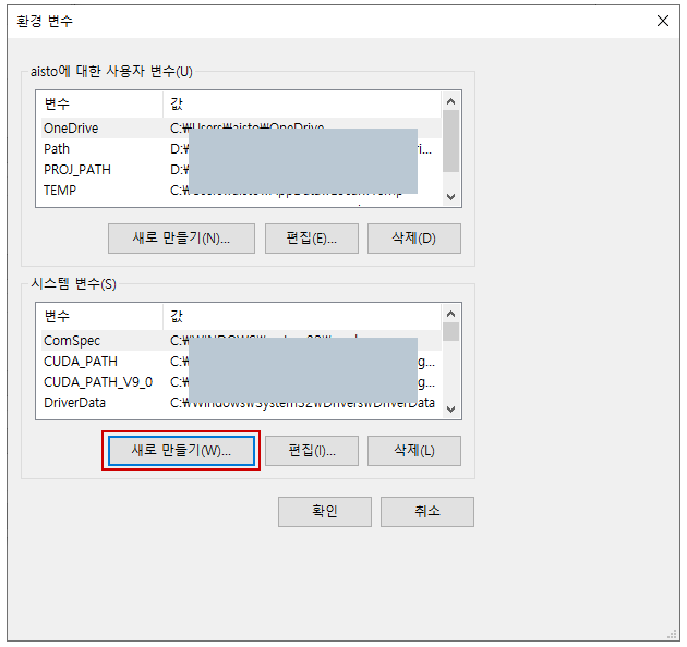 제어판 > 환경 변수 검색 > 시스템 환경 변수 편집