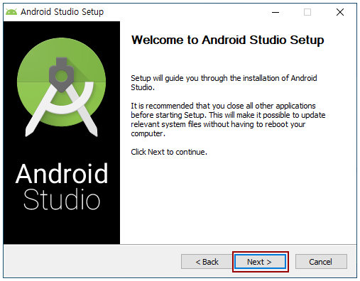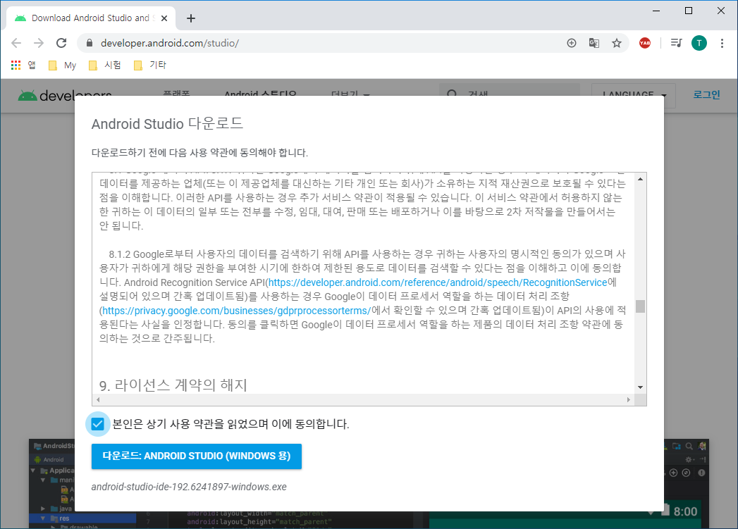 Android Studio 다운로드 (https://developer.android.com/studio/) URL로 이동하여 프로그램을 다운로드한다.