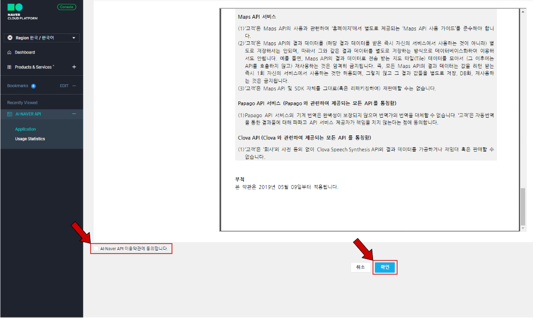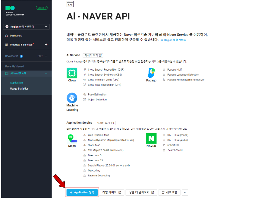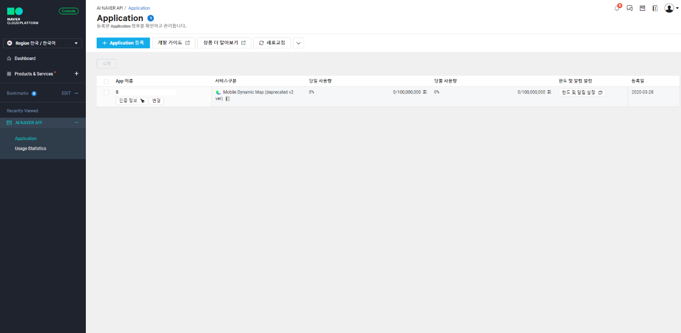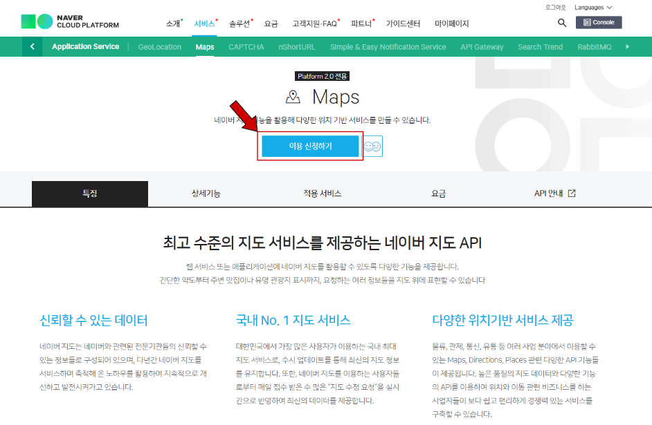 네이버 지도 연동을 위해 네이버 클라우드 플랫폼에서 API 신청을 진행한다.