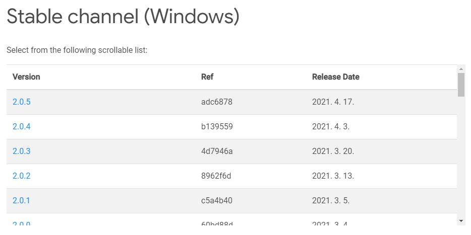 1.1.Window OS에서 Stable 중 가장 최근 버전을 다운로드한다. 작성 중(4/17)에 나온 따끈따끈한 Stable 버전 2.0.5.