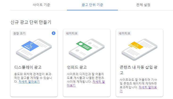 광고 단위 기준 탭 > 디스플레이 광고 클릭