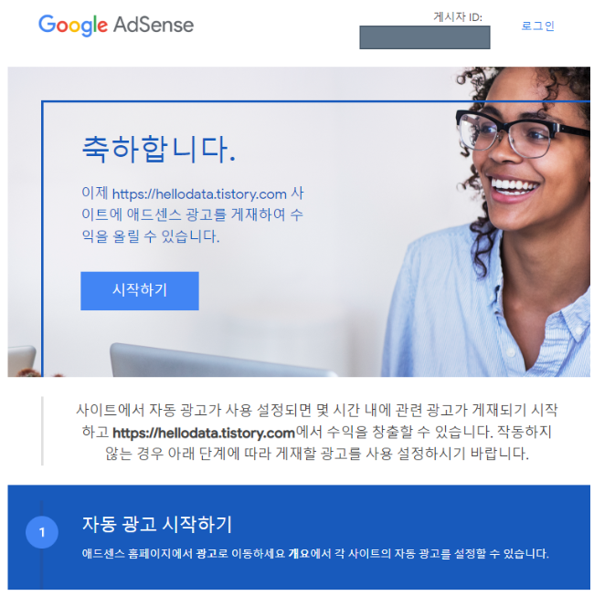 구글 애드센스에 광고를 신청한지 일주일이 지나고 승인 완료 메일이 도착했다.