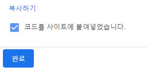 제공되는 HTML 코드를 복사 후 티스토리 플러그인에 적용하면 된다.