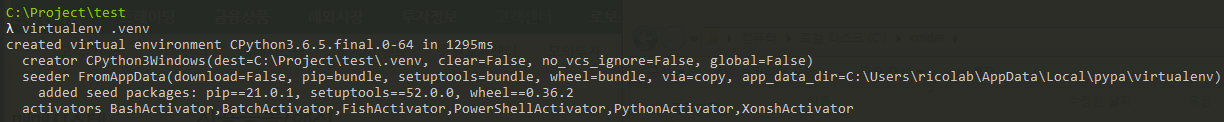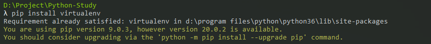 virtualenv가 이미 설치가 된 PC 환경이라 위와 같이 나온다.