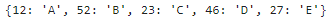{12: 'A', 52: 'B', 23: 'C', 46: 'D', 27: 'E'}